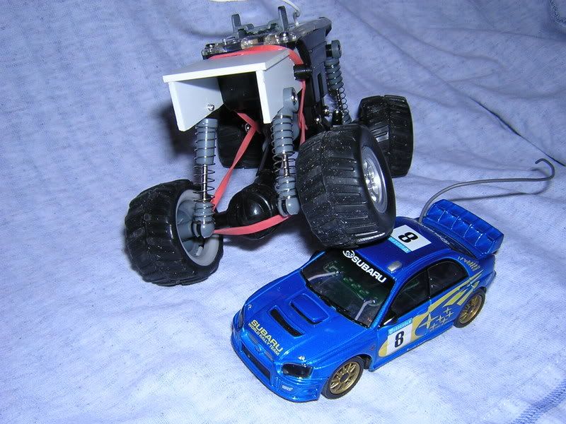 yeah, thats the only thing i don't like is my steering is very weak one direction. i hate to change the electronics because i like charging the battery off of the controler. i actually have a four channel reciever, speed control and servo small enough to fit in the chassis i'd just have to find a good battery pack and get a charger. i may end up starting from scratch and making a chassis and using the axles with a four link setup and standard driveshafts (of course finding ball joints and rod ends that small may be impossible).