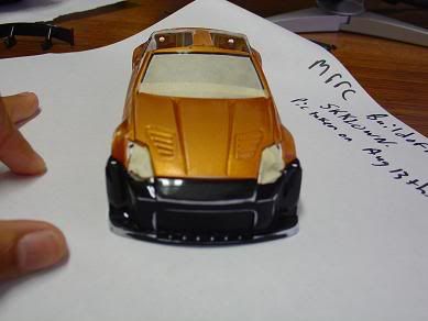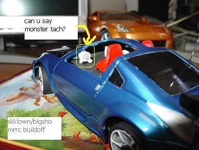 since people aren't liking the painted taillight...i used some "OOPS" spray and made them red again. i also glued the monster tach on the car. all that is left is to hinge the hood....unless i get more ideas.