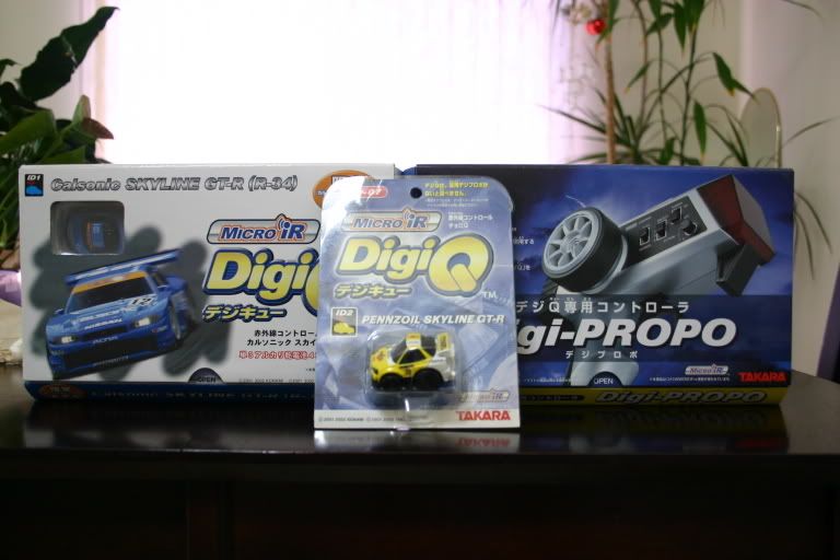 Hi everybody. I've had these DigiQ's for about one year now and I don't use them anymore. These DigiQ's are faster than Zip Zaps and Bit Char-G's. These things are almost too fast. Measuring at just a little less than 2 inches long and 1 inch tall, they are a blast to use in class for those boring days of school. 4 AA batteries are inserted through the bottom of the pistol grip radio to send InfraRed signals to the cars. The DigiQ's are charged on the back of the radio for about 3 minutes for a 3 minute runtime. There are two drive modes, one slow and one fast. They have semi proportional steering and throttle control. The front wheels remain stationary while the rear wheels drive and turn the car. They drive like tanks basically. With the optional Digi Propo Special controller, you can set the DigiQ to dance, swerve left and right, or even DRIFT. I've never used the Digi Propo Special and I've never seen them drift before, but I suppose it is possible. You can also modify ChoroQ bodies to use and even put lights on them.