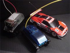 Plantraco manufactures a diverse array of RC products, from blimps, to tanks, to tiny video cameras. We got a pair of their Desktop Rovers to check them out. The Rovers measure only 4" long, and take 2 3V lithium 123 cells, plus a 9V for the transmitter. Unlike most RCs, these batteries will last for days and days. The tank is no speed demon, but what it lacks in top end, it more than makes up for in torque.
