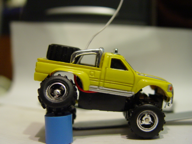 Dual Cell, fixed axle slop, "swaybar spring", Bit Articulation, paddle -> pin knob tires, front and rear skidplates, removed useless bracing and other ground clearance robbing stuff, reloacated rollbar, bedmount spare, clearanced fenders...