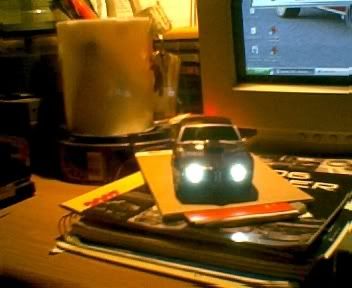 And lastly this is my Firebird... stock color... body kit... six cell modded... RS bearings... AWD... and headlights... (the underglow was removed while i was taking pictures for this post) ...and ususally i have the large rear tires on the car but I took it outside to beat it up some and i wanted to use tires that i could easily replace if i wore them down...